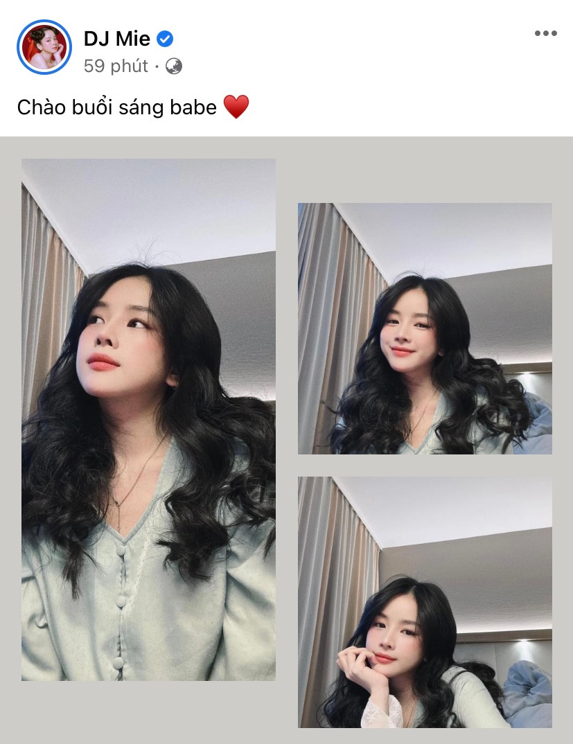 Về phía Mie, mới đây cô đã khoe ảnh xinh đẹp rạng rỡ ở khách sạn cùng dòng trạng thái: "Chào buổi sáng babe".