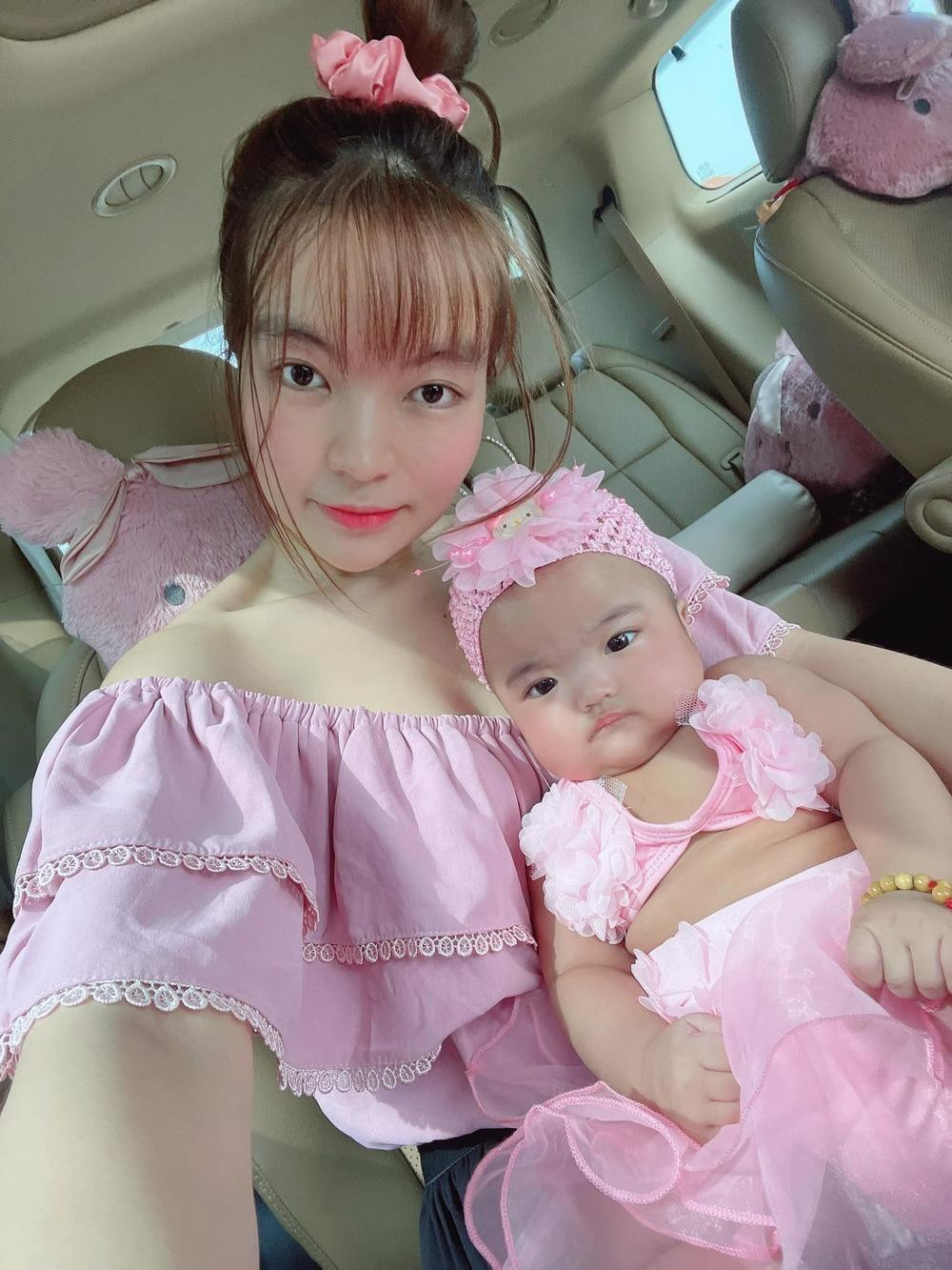 Không những thế, bà xã Mạc Văn Khoa cũng rất chăm diện đồ với nhiều sắc màu cho con cũng như đội tóc giả cho cô bé. Ngoài ra, Á quân Cười xuyên Việt cũng không ngại mặc áo hồng cho "hợp style" với con gái.
