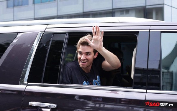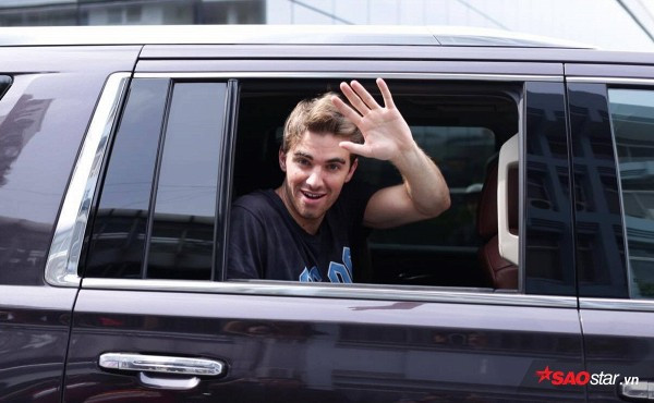 Khi siêu xe di chuyển ra cổng phía ngoài, Andrew bất ngờ hạ kính xe chào fan Việt.