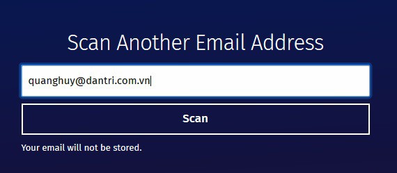 Những gì người dùng cần làm là truy cập vào trang web của Firefox Monitor tại đây (có thể truy cập bằng bất kỳ trình duyệt nào, không nhất thiết phải là Firefox), sau đó điền địa chỉ email mà mình muốn kiểm tra vào khung trống rồi nhấn nút “Scan”.