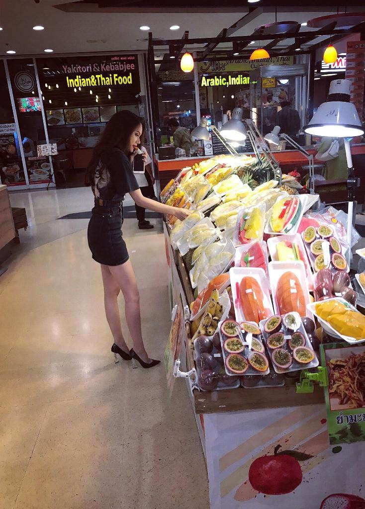 Tận dụng thời gian nghỉ ngơi vào tối qua - 11/3, Hương Giang đã tranh thủ đi shopping và ăn uống tại một trung tâm thương mại ở Pattaya. Điều thú vị là dù mới đăng quang và được BTC chuẩn bị xe riêng nhưng Hương Giang quyết định chọn xe songthaew (song thẻo) - phương tiện công cộng của người dân và khách du lịch ở Pattaya, để di chuyển.