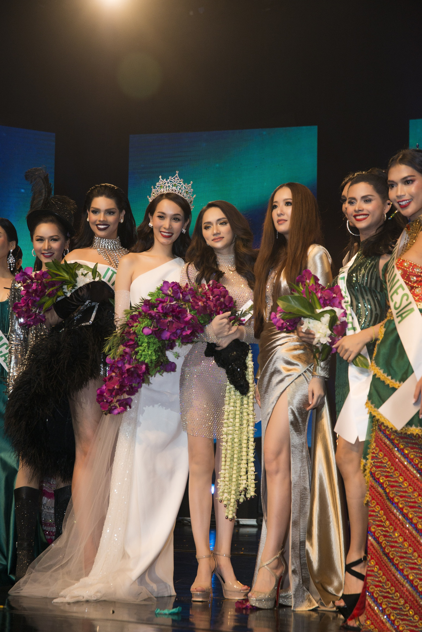 Mở màn đêm thi, những người đẹp đã xuất hiện đầy tự tin trong bộ trang phục truyền thống của dân tộc mình. Đặc biệt, Hương Giang khiến nhiều người hâm mộ Việt Nam nức lòng khi mặc bộ trang phục Golden Lotus nặng tới 55 kg nhưng vẫn tỏa sáng rạng rỡ trên sân khấu của Miss International Queen 2018.
