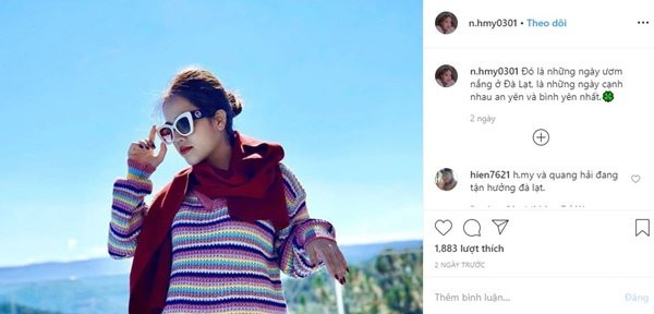 Mới đây, Huyền My – bạn gái tin đồn của Quang Hải đã có chuyến du lịch tại Đà Lạt cùng bạn bè. Trên trang cá nhân, cô viết: “Đó là những ngày ươm nắng ở Đà Lạt, là những ngày cạnh nhau an yên và bình yên nhất”.