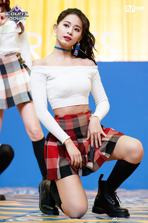 Tzuyu nhận được 14.727 lượt bình chọn. Trên show âm nhạc M!Countdown, cô nàng gây sốt với kiểu tóc lộ trán, áo trễ vai gợi cảm.
