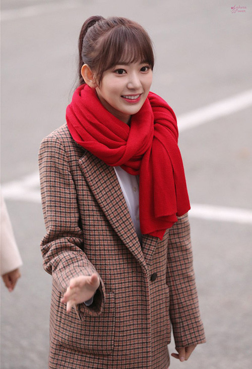 Um Ji từng tự ti về nhan sắc, luôn để tóc suông, mái dày che kín khuôn mặt. Em út của G-Friend đã lột xác nhờ giảm cân, ngày càng xinh đẹp hơn. Kiểu tóc lộ trán, buộc cao hợp với vẻ đẹp trong sáng.