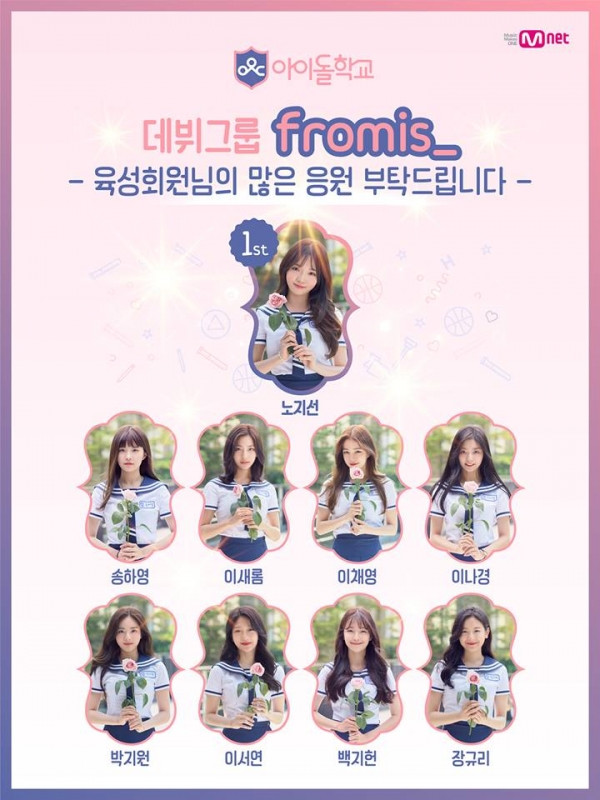 Nhóm nhạc bước ra từ Idol School sẽ có tên gọi là Fromis. Cái tên này có hai ý nghĩa: Một girlgroup được thành lập từ Idol School (From Idol School) và mục đích tồn tại của nhóm là luôn thực hiện lời hứa với các fan (Fan + Promise).
