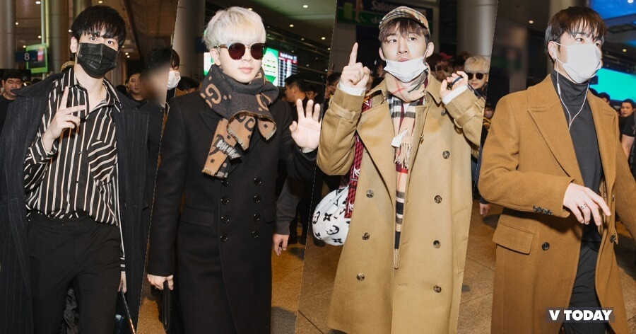 Trong trang phục lịch lãm cuốn hút, các chàng trai nhà YG đã biến sân bay thành sàn diễn thời trang đầy bắt mắt. Chanwoo hoá công tử lịch lãm, Junhoe bảnh bao với áo khoác dạ, B.I và Yunhyung “bùng nổ” khí chất sang chảnh với set đồ hiệu đến từ Gucci, LV, Burberry... Các thành viên Bobby, Jinhwan, Donghyuk cũng lên đồ cực cá tính.