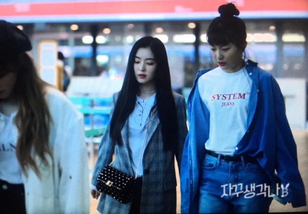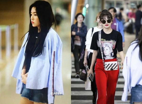 Trong một chuyến bay trở về Hàn Quốc, Irene và Seulgi đã có dịp thể hiện rõ sở thích ăn mặc của mình. Irene thì giản dị nhưng vẫn nữ tính khi để tóc xõa, mặc váy denim và áo sơ mi khoác ngoài làm điểm nhấn. Ngay cả dáng đứng của Irene cũng rất dịu dàng. Trong khi đó Seulgi lại xuất hiện đầy mạnh mẽ và nổi bật với trang phục có đủ ba màu cơ bản trắng, đỏ và đen.
