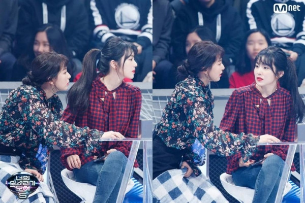 Ngay cả khi tham gia show truyền hình, dù Irene và Seulgi chọn trang phục, kiểu tóc và trang điểm hao hao nhau, thì vẫn tạo ra vẻ khác biệt. Irene chọn sơ mi kẻ đỏ - đen và buộc tóc đuôi ngựa, nhìn không quá đặc biệt. Nhưng Seulgi lại nổi bật hơn với áo in hoa nhí, váy đen và búi tóc trễ.