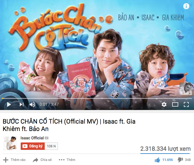 Ngày 19/06 vừa qua, music video “Bước chân cổ tích” đánh dấu sự kết hợp của ca sĩ Isaac, “cô bé triệu views” Bảo An, “soái ca nhí” Gia Khiêm đã chính thức được trình làng. Chỉ vài ngày được giới thiệu rộng rãi, sản phẩm đã ngay lập tức được đông đảo khán giả đón nhận, đặc biệt là các em nhỏ. Tính đến thời điểm ngày 25/06, MV Bước chân cổ tích đã đạt được hơn 2 triệu lượt xem cùng hơn 11 nghìn lượt thích.