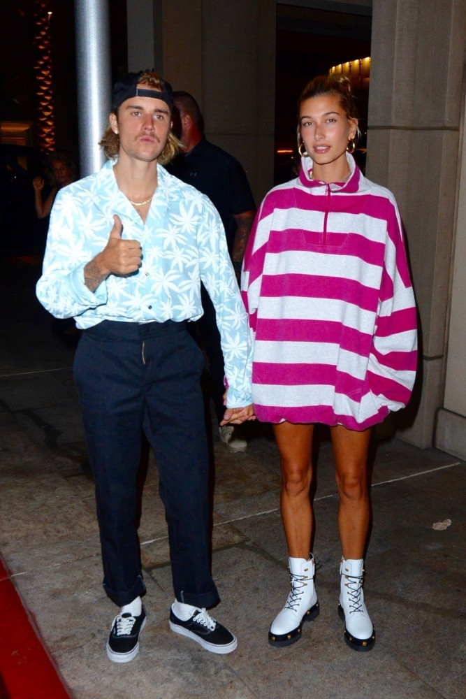 | Hailey lúc nào cũng sang xịn như mặc đồ đi tiệc còn Justin thì mặc đồ đi dạo phố. |