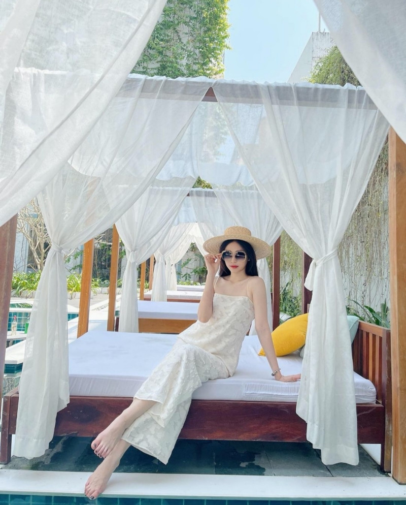 Nhã Phương khoe nhan sắc ngày càng mặn màu sau khi sinh con, bà xã Trường Giang chọn diện bộ trang phục cùng phụ kiện guốc mộc và mũ cói, vừa đơn giản lại thanh lịch.