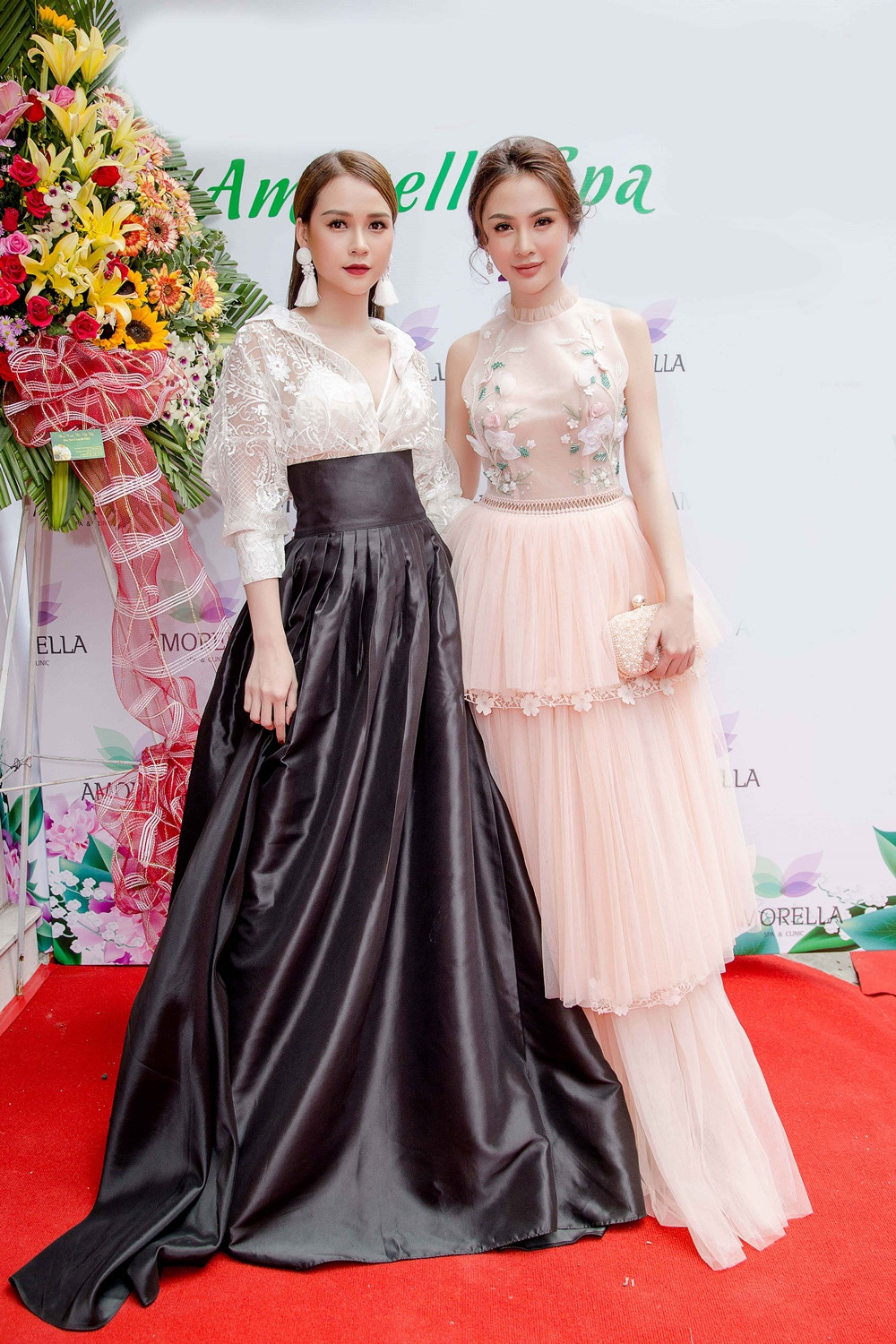 Đôi bạn thân Kelly Nguyễn và Lilly Luta không hẹn mà gặp khi cùng chọn cho mình phong cách nữ tính, thanh lịch với đầm voan theo cấu trúc phân tầng. Khi sắc xanh mang đến vẻ ngoài thanh tú, trẻ trung cho Lilly Luta thì Kelly Nguyễn lại trở thành quý cô ngọt ngào thời thượng với tông hồng pastel.