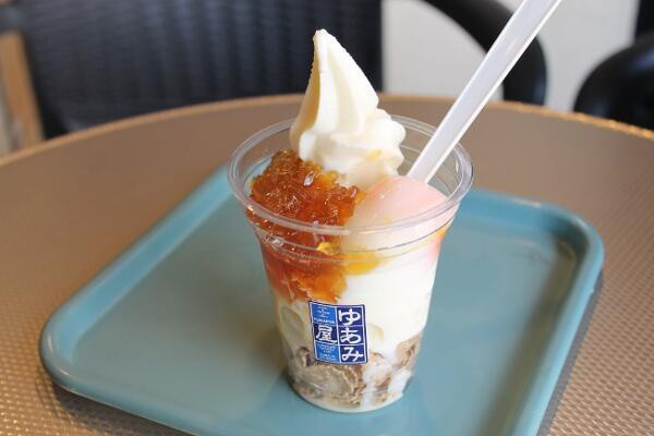 Kem trứng luộc onsen: Trứng luộc onsen được luộc bằng nước suối nóng onsen dưới dạng nửa sống, nửa chín. Sau đó trứng được đập vào phần kem vani hoặc kem đậu nành. Khi ăn, bạn sẽ đánh trứng hòa quyện đều với kem và thưởng thức. Món kem này có vị hơi tanh vì trứng không chín hẳn. Vì thế, món tráng miệng này được xem là “thảm họa” với những ai không ăn được trứng sống.