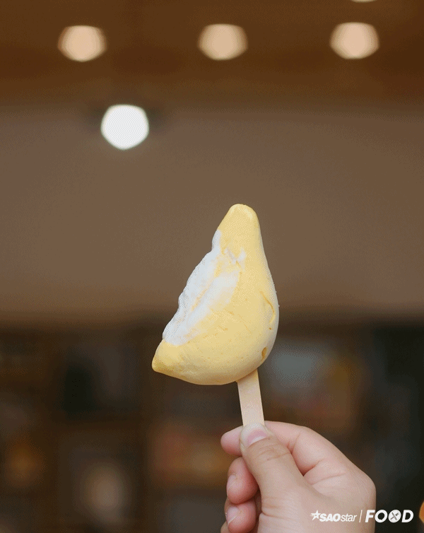 Về hình thức, được thiết kế khá bắt mắt, vỏ ngoài có phần đơn giản nhưng vẫn tinh tế. Que kem bên trong được tạo hình như một múi sầu riêng nhỏ nhắn, khá dễ thương.