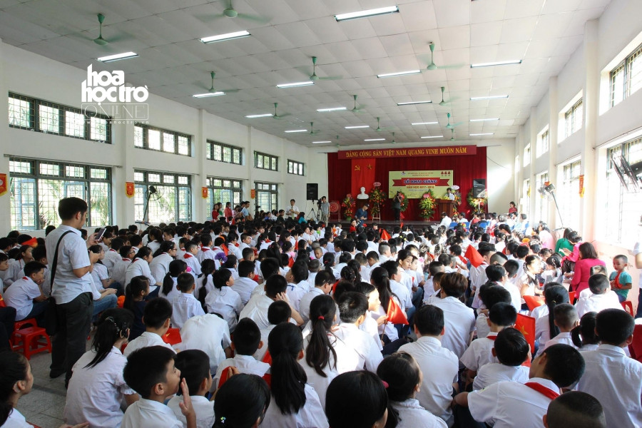 Các thầy và trò tại trường PTCS Xã Đàn đã có mặt từ rất sớm tham dự buổi lễ khai giảng.