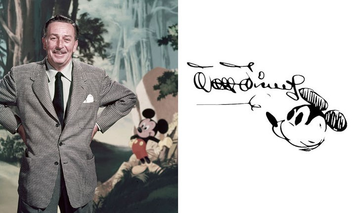 Walt Disney, "cha đẻ" của chuột Mickey không quên cho đứa con tinh thần của mình vào trong chữ ký.