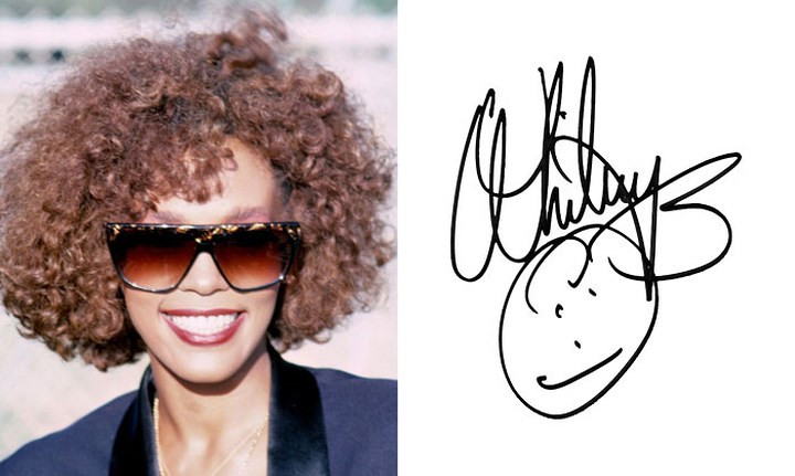 Whitney Houston vẽ hình mặt cười ngộ nghĩnh bên dưới chữ ký cầu kỳ của mình.