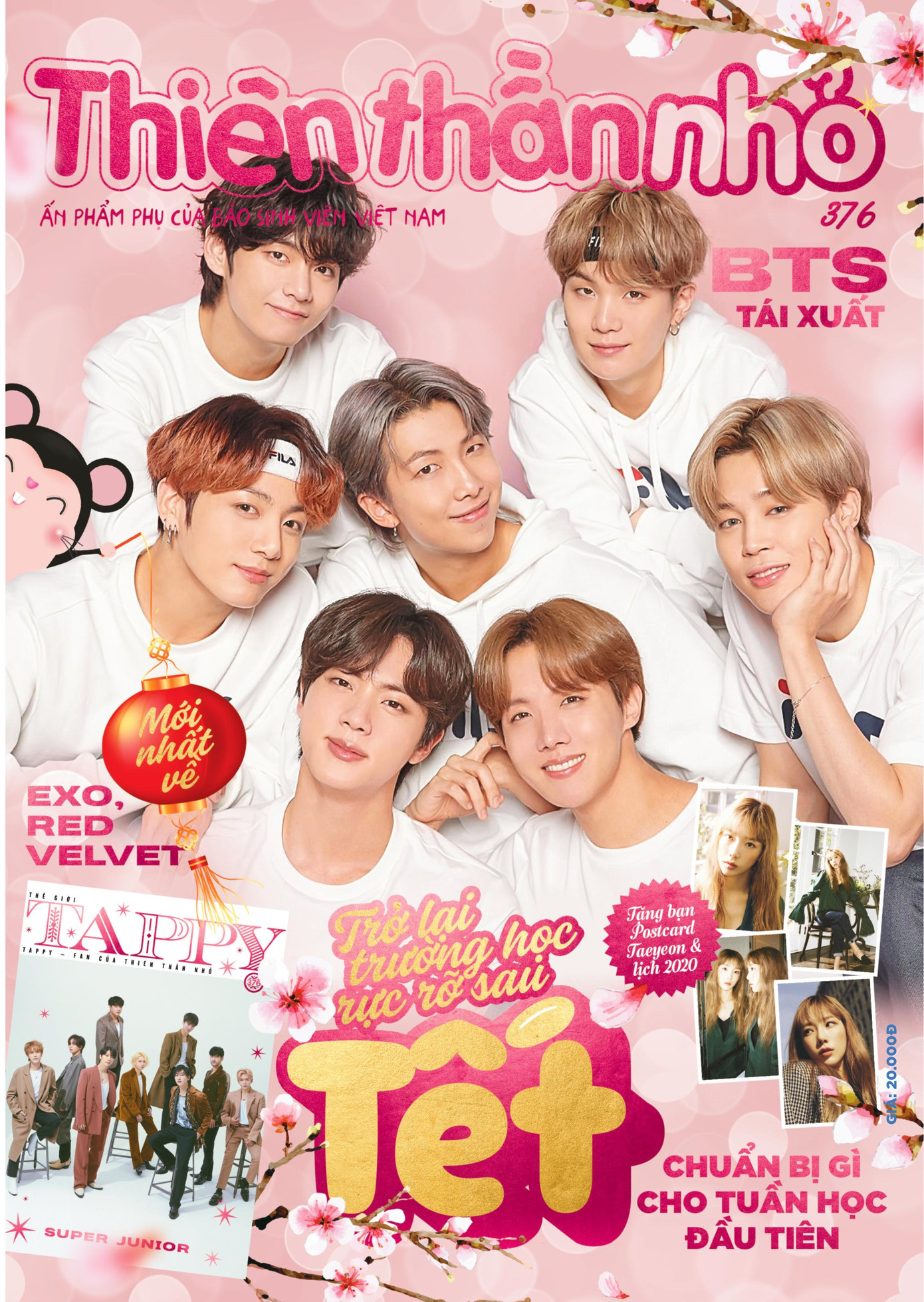Thiên Thần Nhỏ 376 sẽ phát hành ngày 5/2/2020 tại các sạp báo, bưu điện, nhà sách FAHASA trên toàn quốc và Shopee với giá bán chỉ 20.000 đồng. Bạn sẽ nhận được poster lịch của GOT7 & BTS và postcard Taeyeon nằm gọn trong số báo mới.