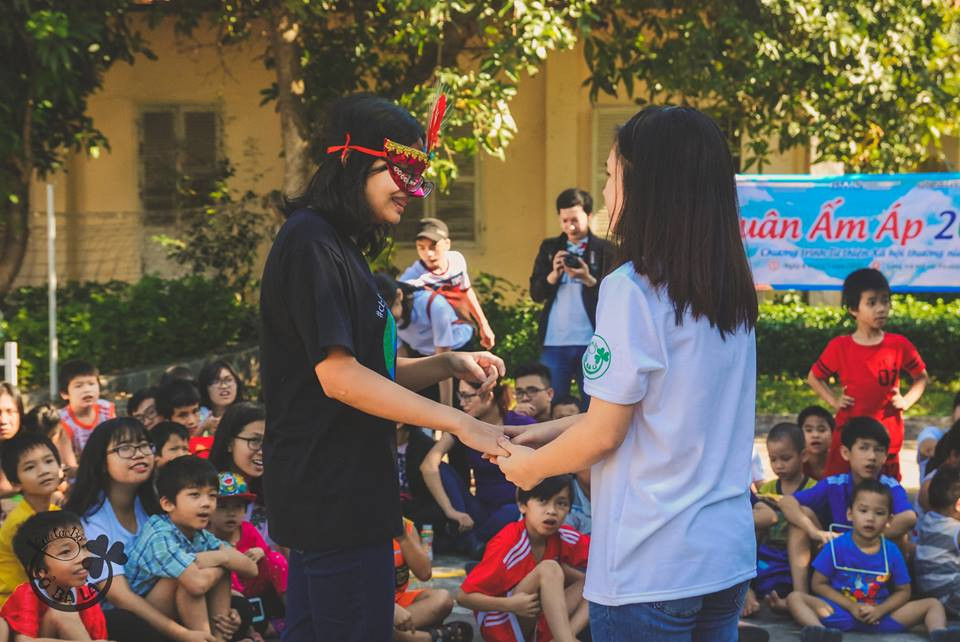 Tiết mục trình diễn vui nhộn mà CLB Cỏ ba lá gửi đến các em nhỏ ở Làng thiếu niên Thủ Đức.