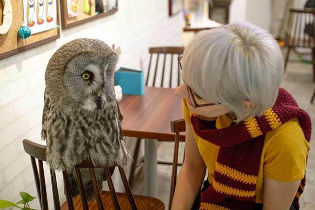 Cũng ở Nhật Bản, Akiba Fukurou tại Tokyo sẽ giúp bạn làm quen với những người bạn cú thân thiết như Hedwig trong Harry Potter. Mở cửa vào quán, bạn sẽ được biết đến cảm giác bị hàng chục đôi mắt cú nhìn chằm chằm là thế nào nhé. Mất 12 USD (khoảng hơn 200K), bạn có thể chơi thoải mái với cú trong một giờ.