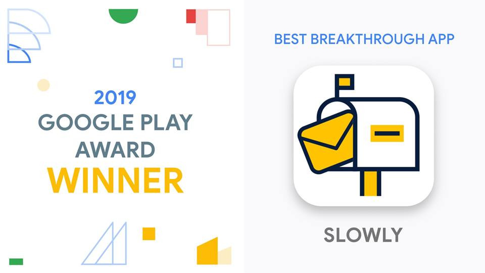 Chính vì những sự thú vị và khác biệt của mình mà Slowly đã nhận được giải thưởng Ứng dụng đột phá của Google Play 2019 đó.