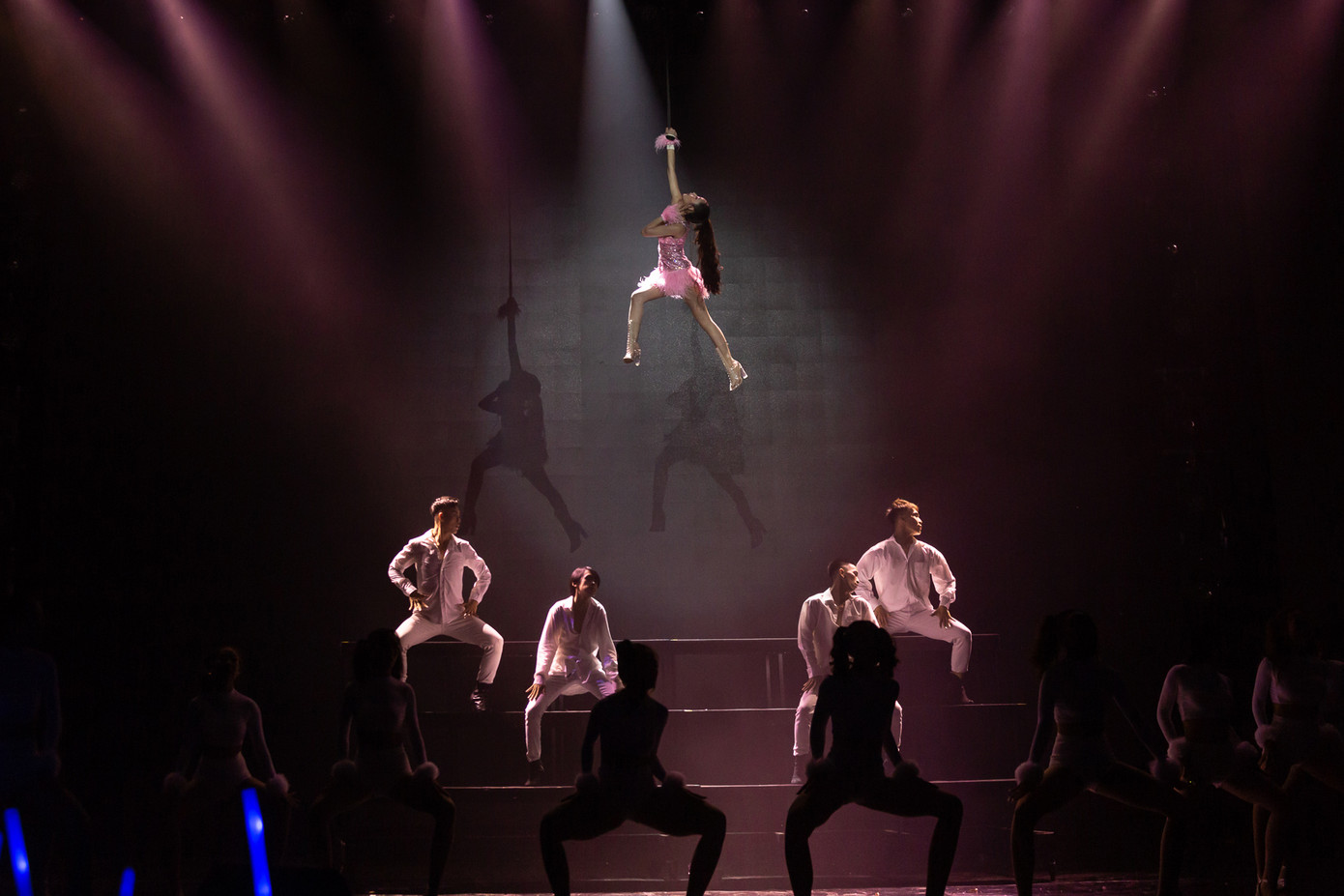 Đặc biệt, khi trình diễn ca khúc Mời anh vào team (<3) em,="" chi=""> còn tạo ấn tượng bởi màn vũ đạo trên không. Thay vì biểu diễn cùng vũ đoàn đơn thuần, giọng ca sinh năm 1993 đã treo một tay trên không và trực tiếp thực hiện các động tác xoay mình vô cùng nguy hiểm.
