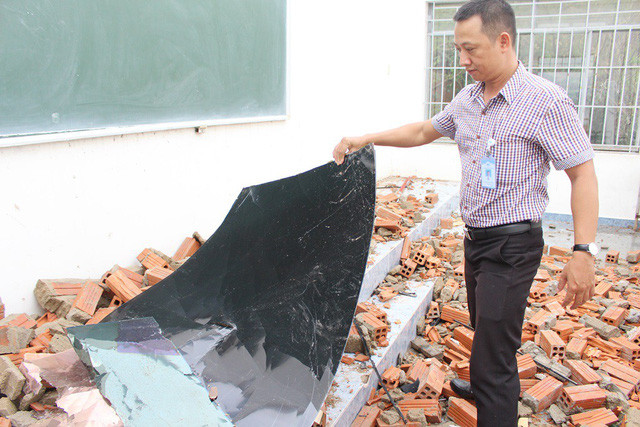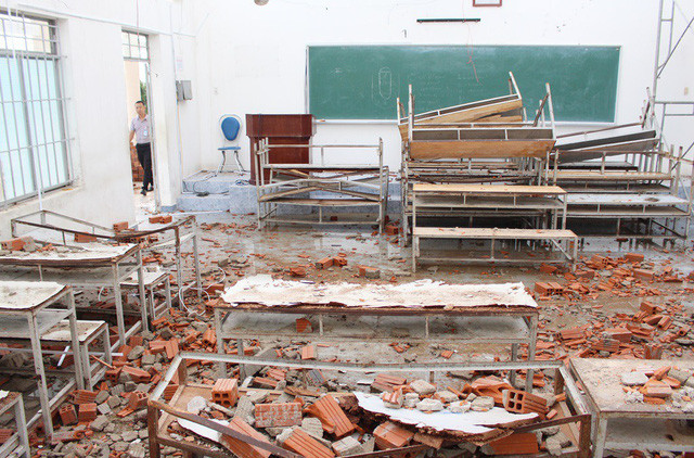 Khoảng 500 bộ bàn ghế, bục giảng của nhà trường bị hư hỏng.