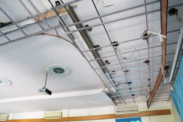 Hệ thống điện ở nhiều khu giảng đường, phòng hành chính bị tê liệt, bong tróc.