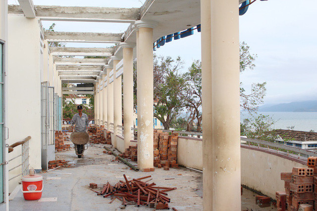 Hiện nay, công tác khắc phục sau bão số 12 tại trường Đại học Nha Trang vẫn đang rất khẩn trương.