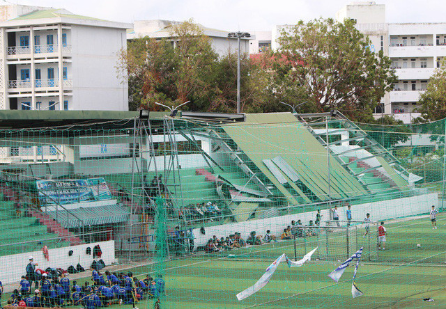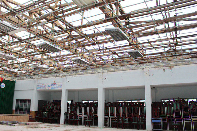 Mái che sân vận động của nhà trường bị bão số 12 đánh sập một phần.