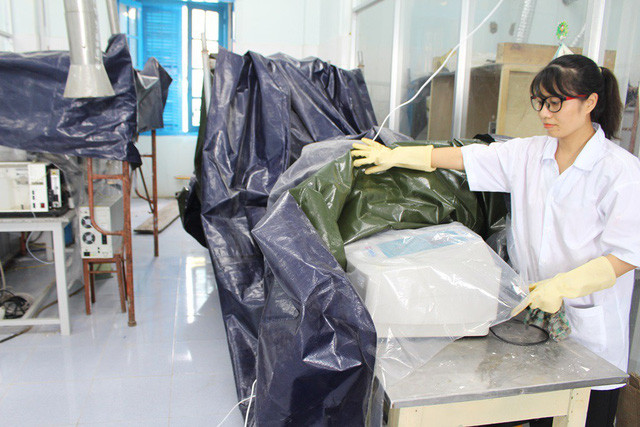 Hệ thống máy móc ở các phòng thí nghiệm cũng bị ẩm ướt do mưa bão.