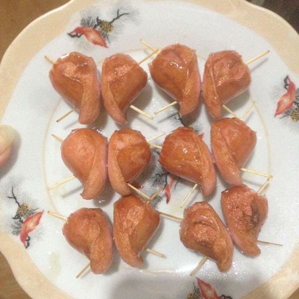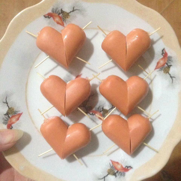 Xúc xích khi mới cắt gọt tỉa tót thành hình trái tim rất bắt mắt.