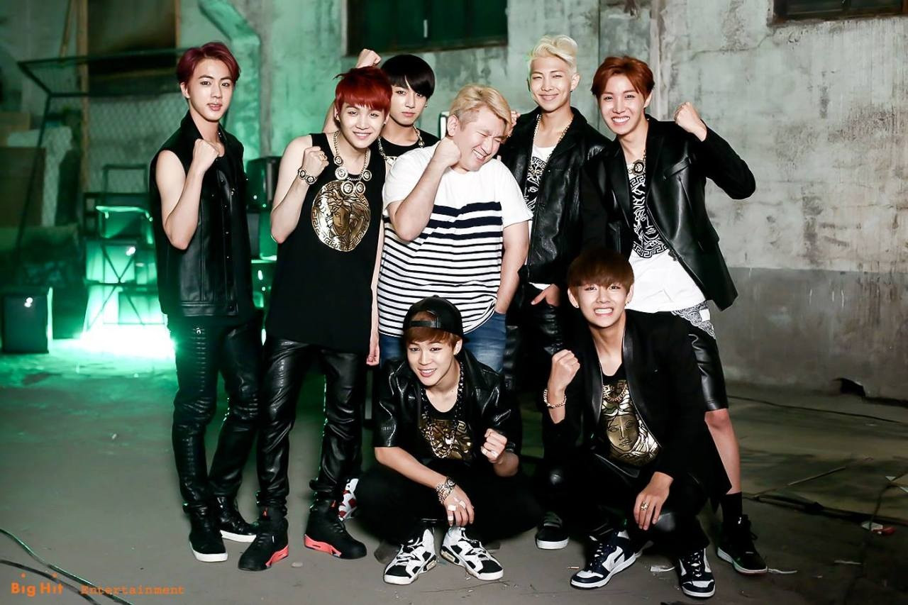 BTS cùng CEO Bang Shi Hyuk của Big Hit Entertainment.