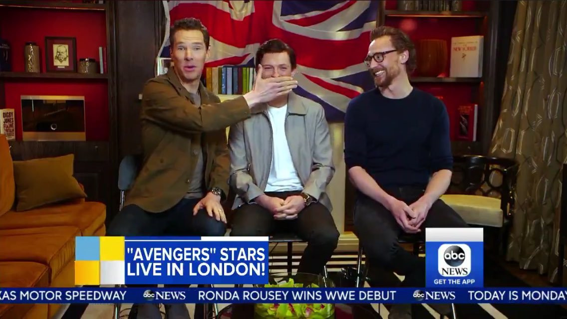 Tình cờ, Benedict Cumberbatch (diễn viên đóng Doctor Strange) cũng trở thành người thường xuyên “đi theo” trông chừng Tom Holland (diễn viên đóng Spider-Man) để “cậu nhóc” không lỡ miệng kể hết cả nội dung phim.