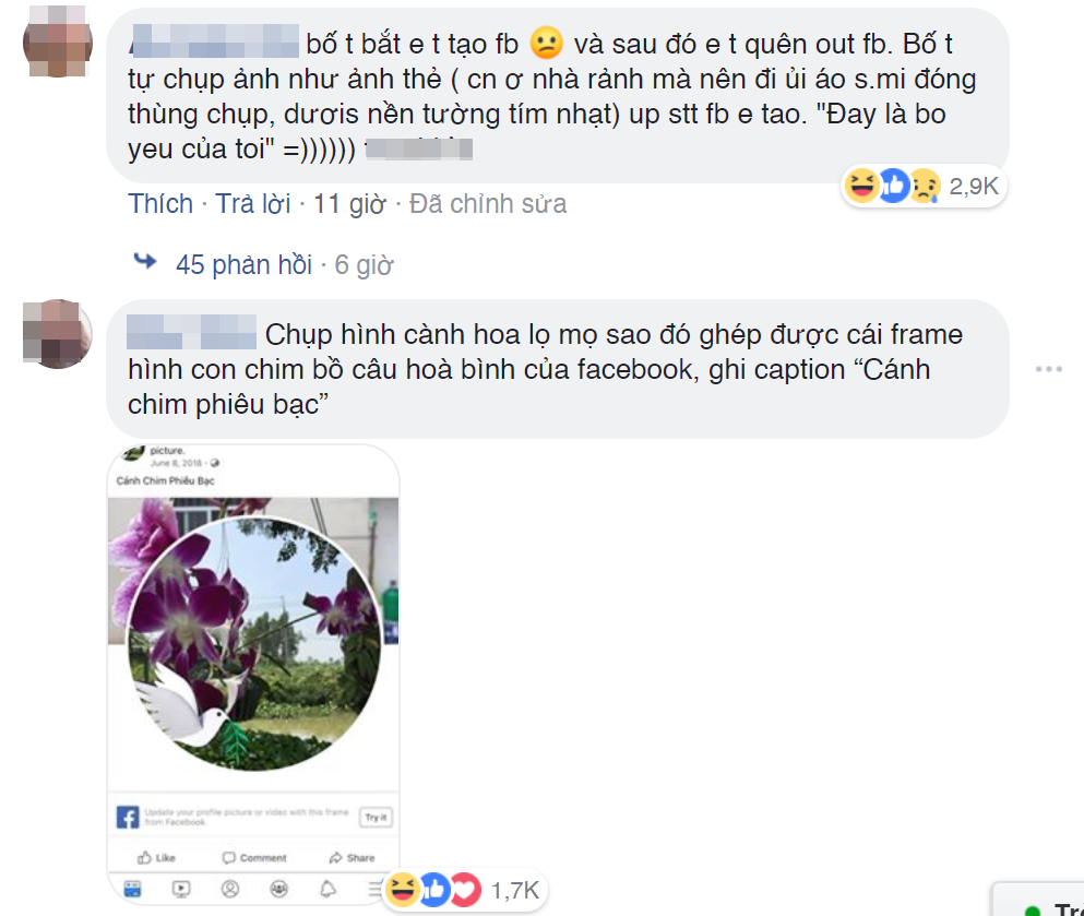Không chỉ sử dụng mạng xã hội để kết nối bạn bè hay để giải trí, bố mẹ còn dùng Facebook để đi tìm người yêu cho con: "Tao lập Facebook cho mẹ tao, tự dưng mẹ tao kết bạn Facebook 1 anh xong nhắn tin "nhà cô có con gái chưa có người yêu, cháu có yêu không?" Tin được không, giờ anh ấy là người yêu tao nè".
