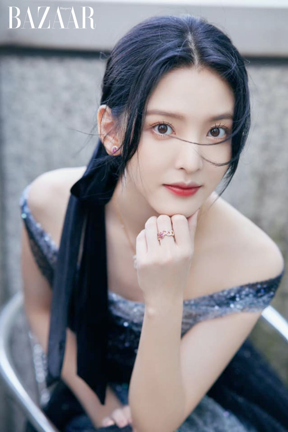 Điểm nhấn của phong cách trang điểm này nằm ở đôi mắt to tròn thuần khiết có chút man mác buồn. Chương Nhược Nam chỉ tán màu mắt trong phạm vi xương hốc mắt, tạo chiều sâu bằng tông màu đậm hơn ở đường gấp mí và đuôi mắt, đồng thời sử dụng highlight nhẹ nhàng ở phần giữa bọng mắt. Kỹ thuật này sẽ giúp tôn lên đôi mắt to và long lanh vốn có của nữ diễn viên, tạo nên vẻ đẹp tự nhiên gây sốt của “tình đầu quốc dân”.