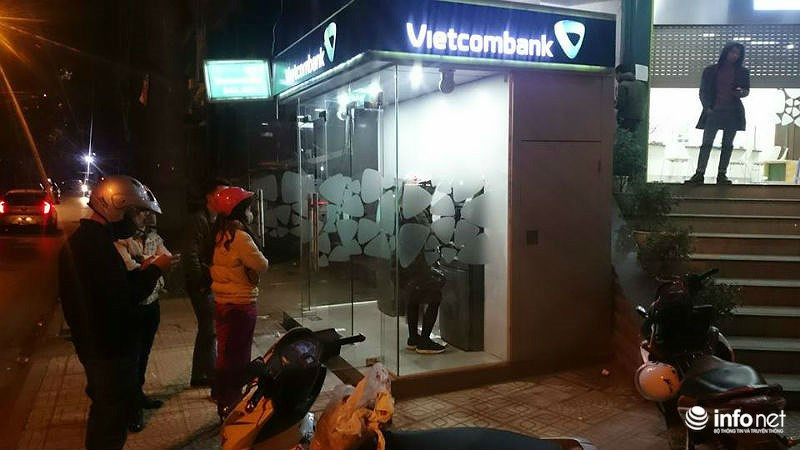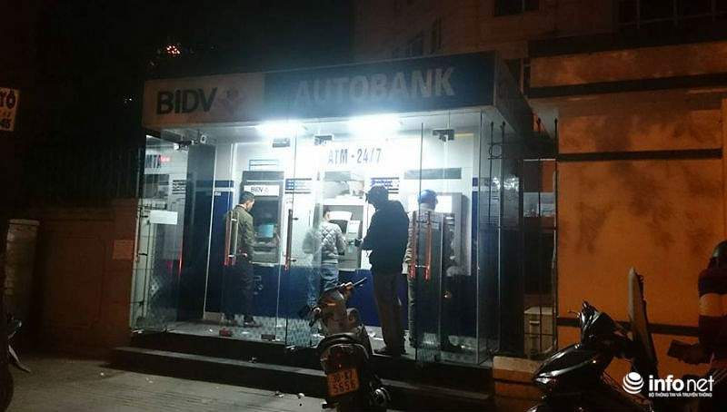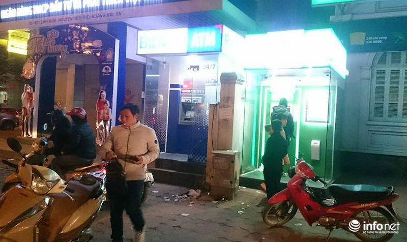 Hình ảnh tại cây ATM của BIDV Giải Phóng về đêm cùng ngày.