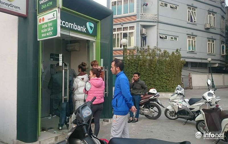 Hình ảnh lúc 16h chiều 24 tháng Chạp tại một cây ATM của ngân hàng Vietcombank khu vực Linh Đàm.