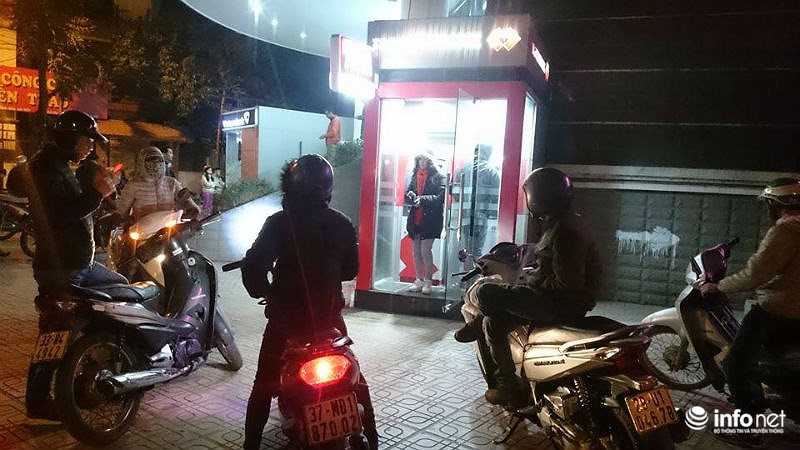 Lúc 22h đêm vẫn còn rất nhiều người đứng chờ để rút tiền.