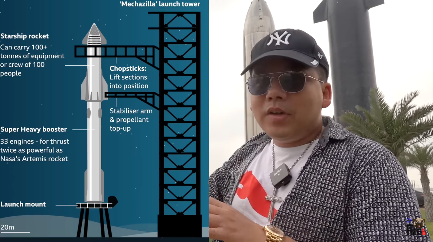 Cụ thể, trong video mới nhất được đăng tải, Khoa Pug đã đến Starbase - trụ sở phóng tên lửa của công ty SpaceX do tỷ phú Elon Musk để tham quan. Vào ngày 20/4 vừa qua, trụ sở này từng phóng tàu vũ trụ Starship ra ngoài không gian. Tuy nhiên, chỉ 4 phút sau khi rời bệ phóng, tên lửa đã phát nổ tan tành. Mặc dù kế hoạch phóng tên lửa không thành công nhưng Khoa Pug chia sẻ đây là "bước tiến cho sự phát triển của lịch sử loài người".