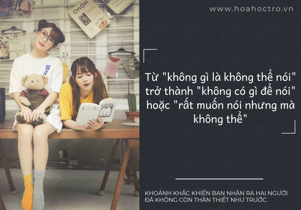 Hai con người từng biết hết mọi bí mật của nhau, từng có rất nhiều chủ đề nói mãi chẳng hết, từng cảm thấy không cần có người yêu, có nó là đủ rồi, không biết từ lúc nào bỗng xa cách nhau. Quen những người khác nhau, quỹ đạo cuộc sống khác sau, có những người bạn của riêng mình...