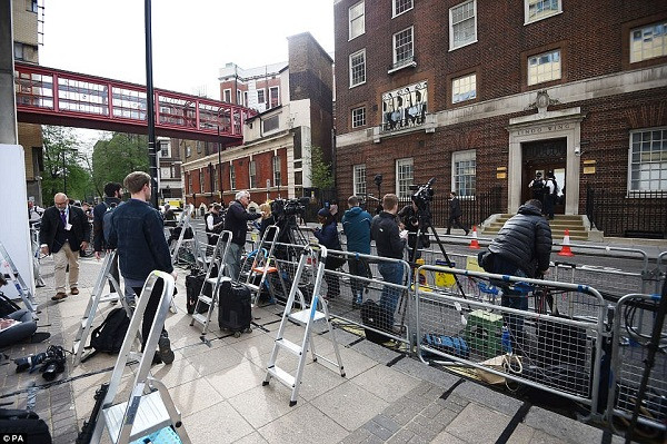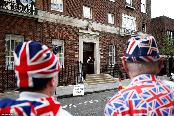 Người dân "ăn mừng" sự ra đời của vị Hoàng tử bé Vương quốc Anh tại Lindo Wing, bệnh viện St Mary's ở Paddington, thủ đô Luân Đôn.