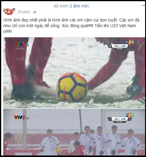”Nhìn các cầu thủ chạy ra cào tuyết để đồng đội có thể đá phạt dễ dàng hơn, thấy sao xúc động quá. Bất kể thắng hay thua, thì các bạn đã là người hùng trong lòng mình rồi” - Facebooker Châm Nguyễn.