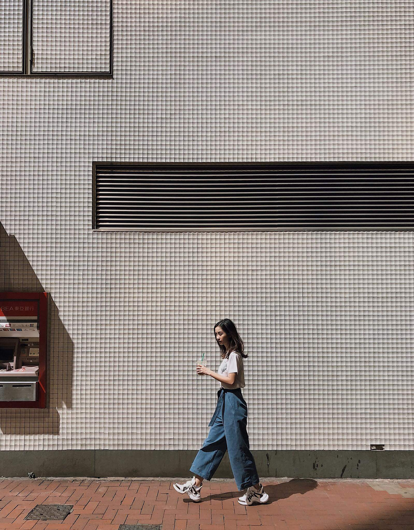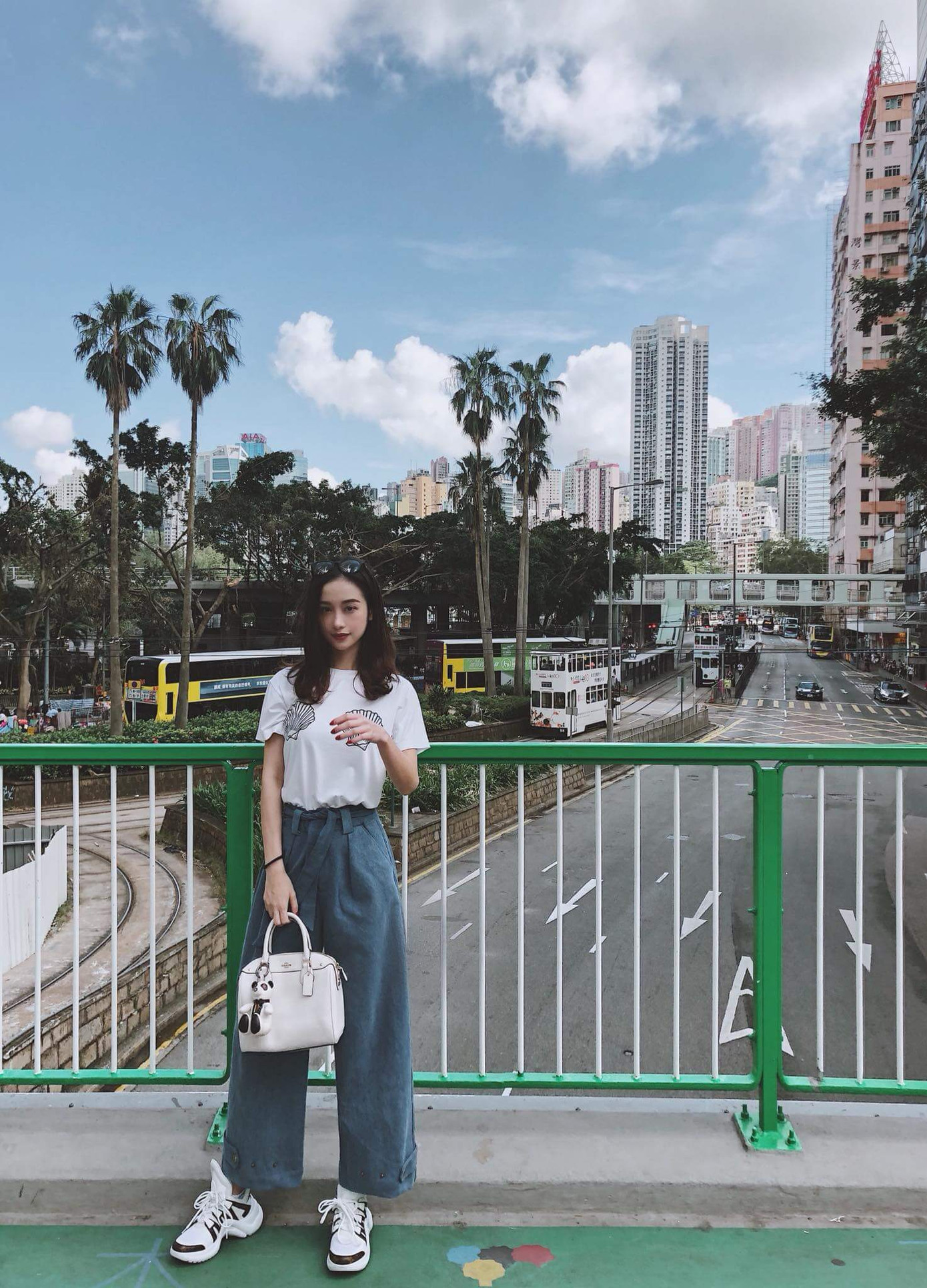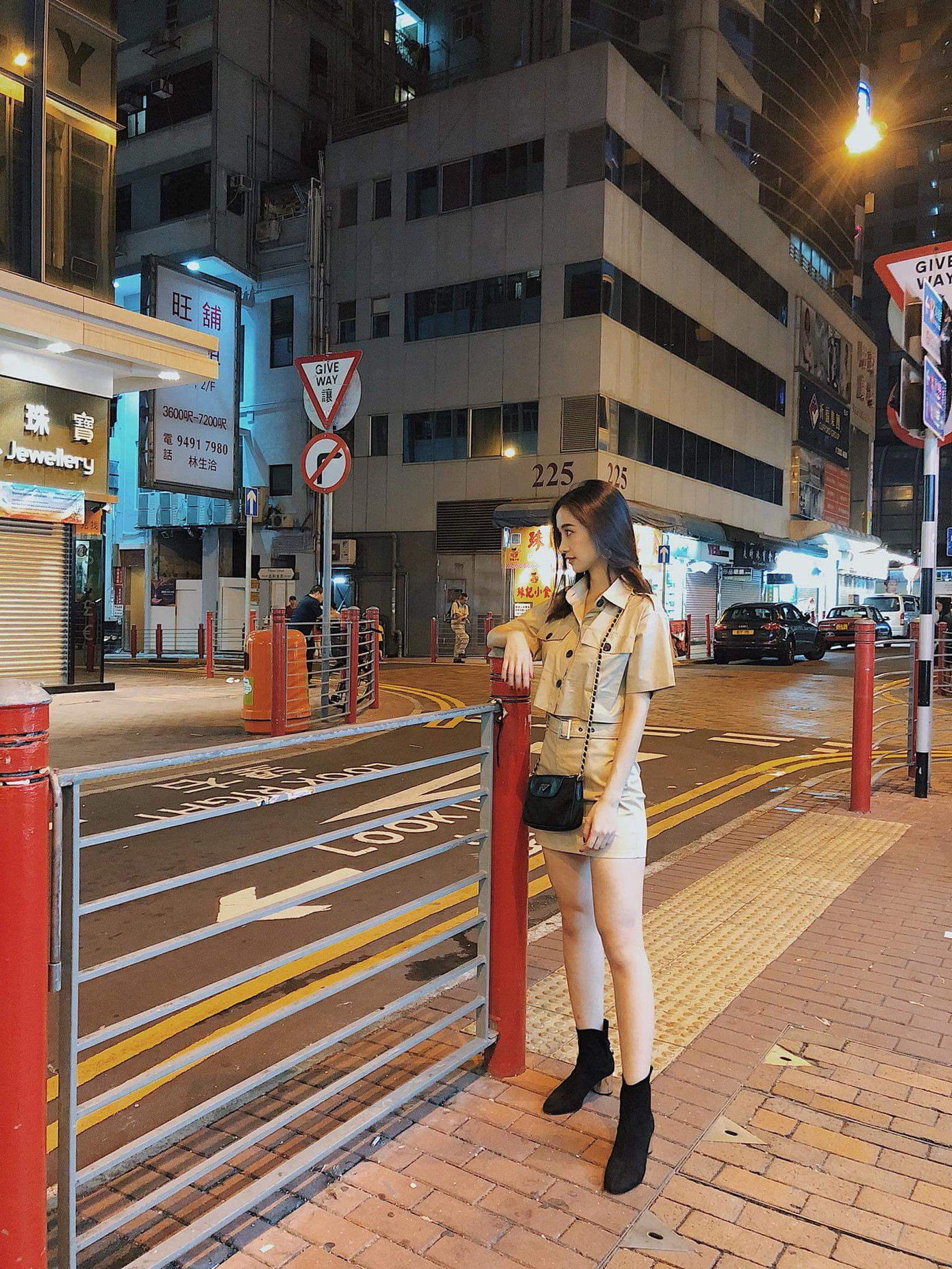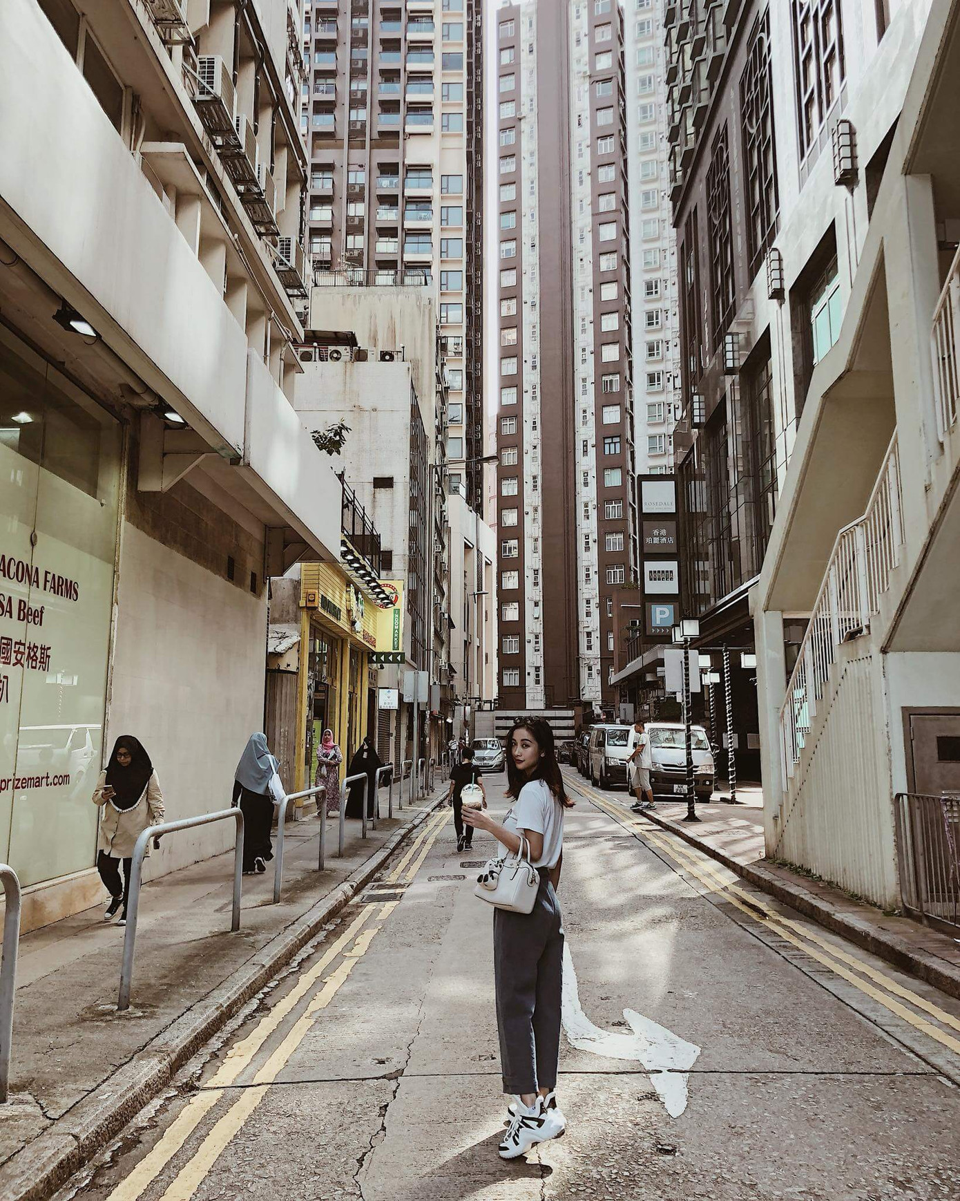 Bức ảnh khiến fan "đổ rầm" vì vòng eo "con kiến" được Jun Vũ khoe khéo trên đường phố Hồng Kông.