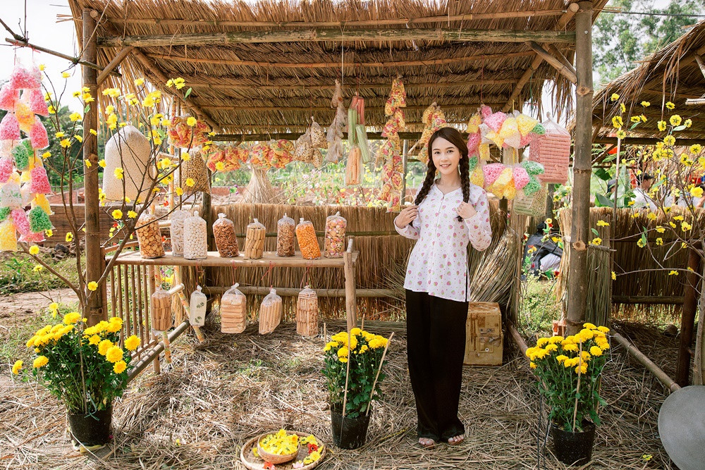 Với phần 3 này, Sam tiếp tục đảm nhiệm vai Út Đượm, sánh đôi cùng Út Kiệm (Jun Phạm thủ vai) trở thành một cặp đôi đáng yêu. Khác với hình ảnh kiêu sa, lộng lẫy trong các sự kiện, trong Cô Thắm Về Làng, Sam trở thành một cô gái quê chân chất, mộc mạc. Dù chỉ mặc áo bà ba hoặc áo dài truyền thống nhưng Sam vẫn toát lên vẻ cuốn hút, đáng mến.