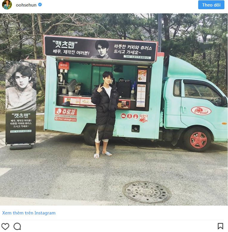 D.O. không quên gửi một xe tải cà phê và đồ ăn cho em út Sehun khi Sehun đang quay phim Catman.