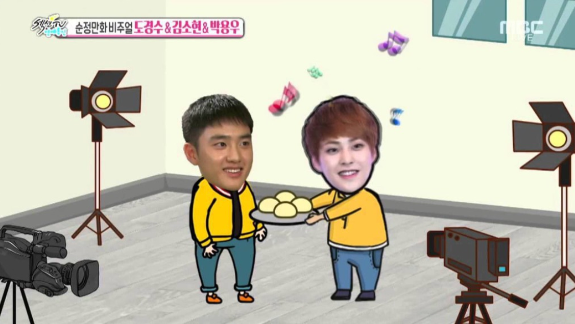 Khi Xiumin quay phim trực tuyến Falling for Challenge, D.O. đã mang bánh đến tận phim trường để cổ vũ đồng đội.