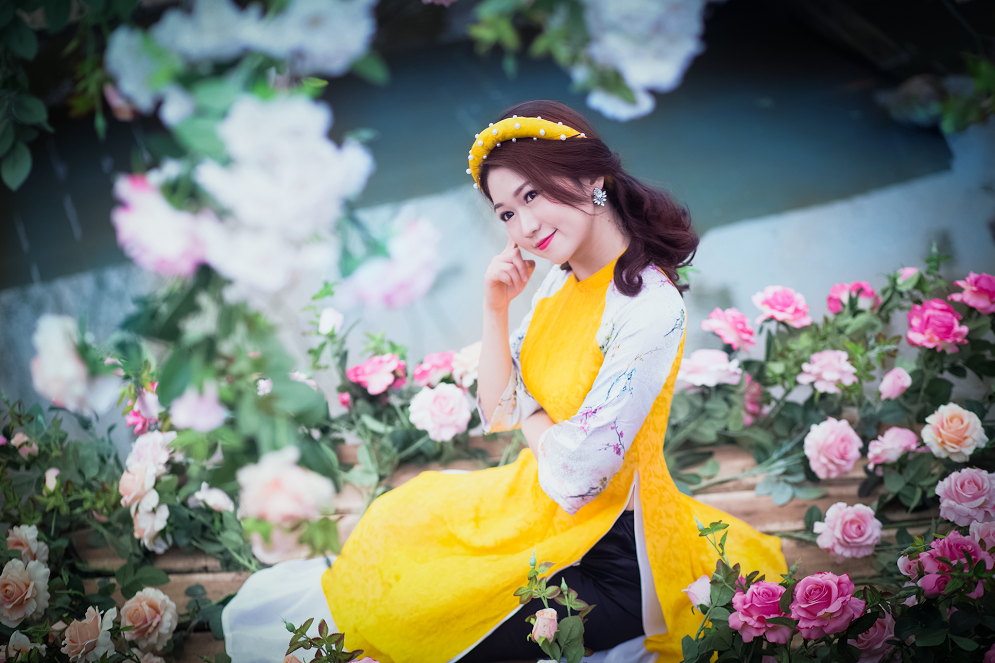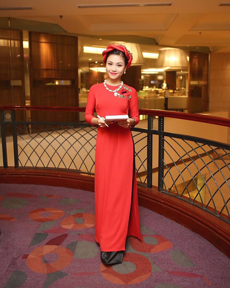 MC Quỳnh Trang duyên dáng trong tà áo dài truyền thống.