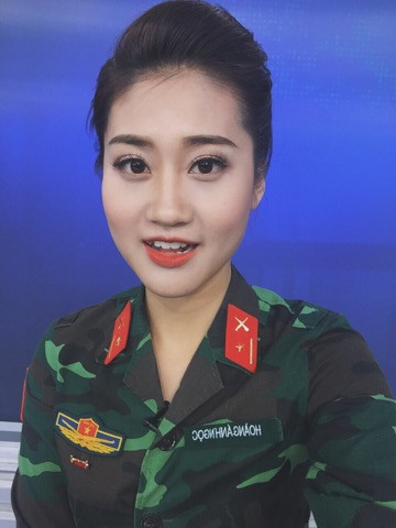 MC Ánh Ngọc xinh đẹp, mãnh mẽ trong bộ quân phục khi dẫn dắt bản tin trên QPTV.
